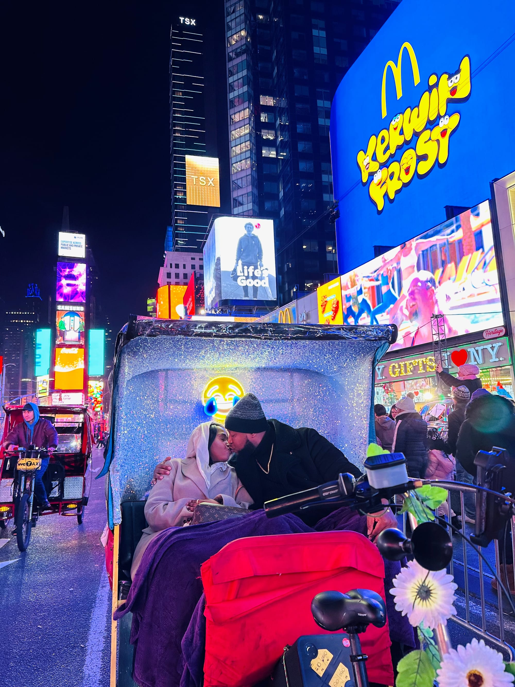 Watch Video and see what its like riding in a carriage pulled by a bike through Time Square NYC.